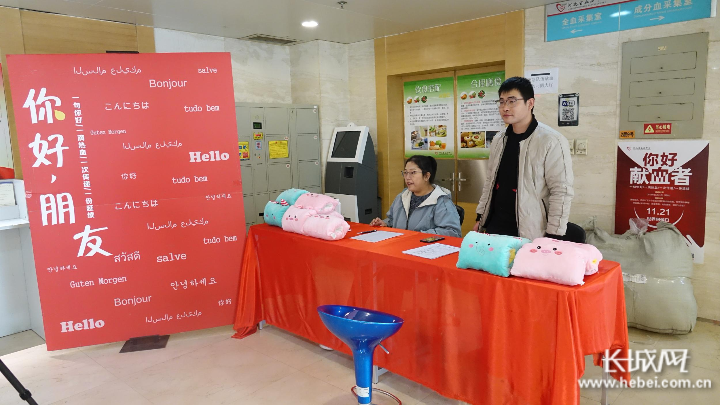 长城网11月21日讯(记者 何震 毕雪梅)发出一个真挚的问候,传递一个甜美的微笑,能无时无刻的把温暖和快乐带给身边的人。11月21日,河北省血液中心在中心本部、卓达献血房车、银座东购献血房车三个采血点同步举办了“世界问候日”主题活动。