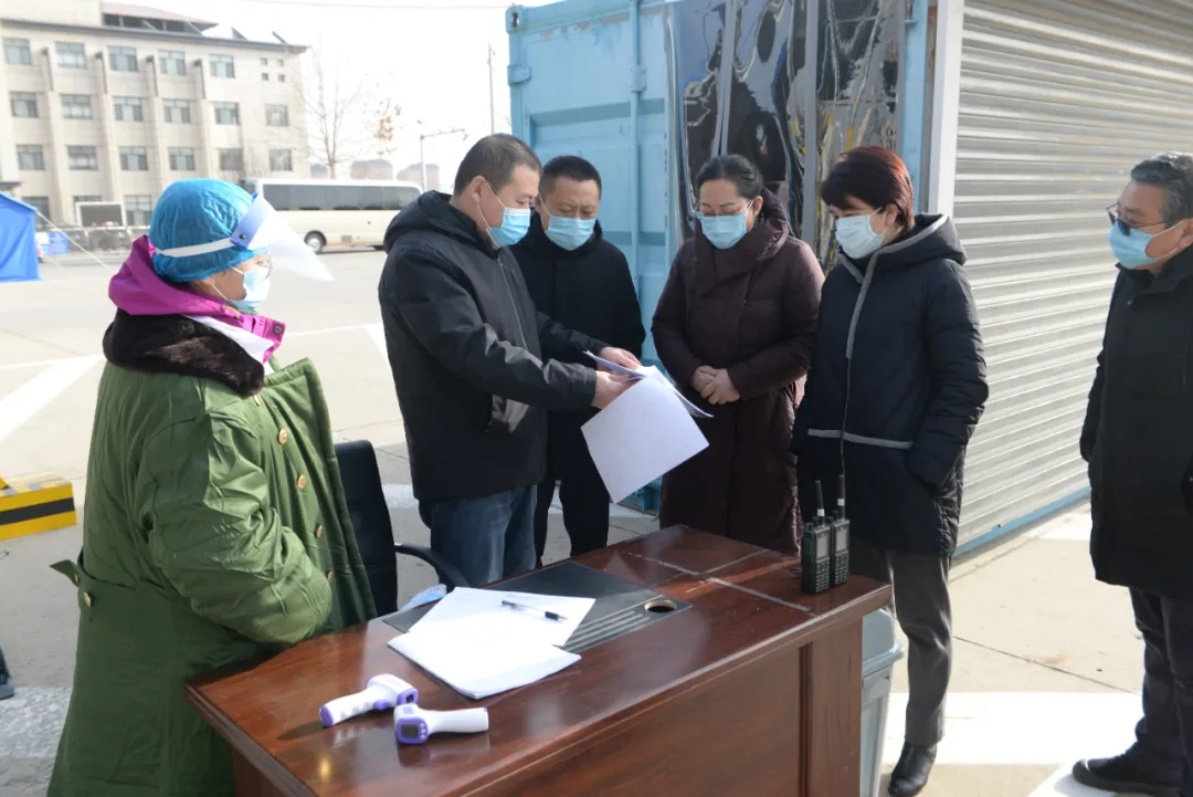 党委书记周军,党委副书记、院长单英杰查看返秦人员体温信息
